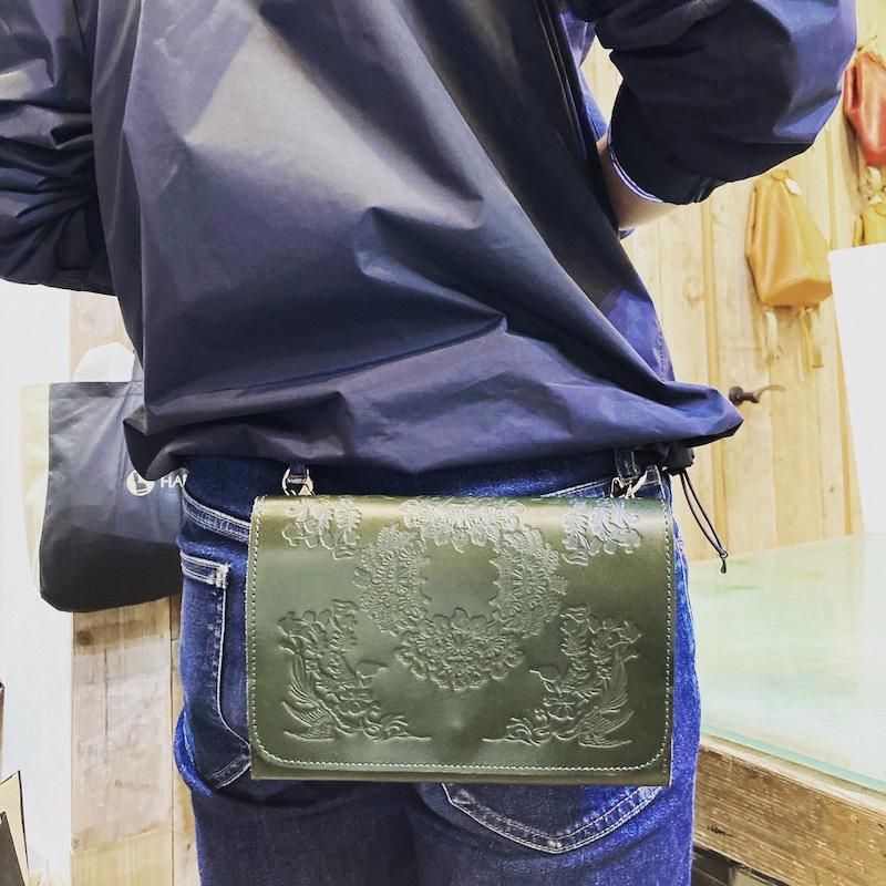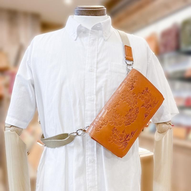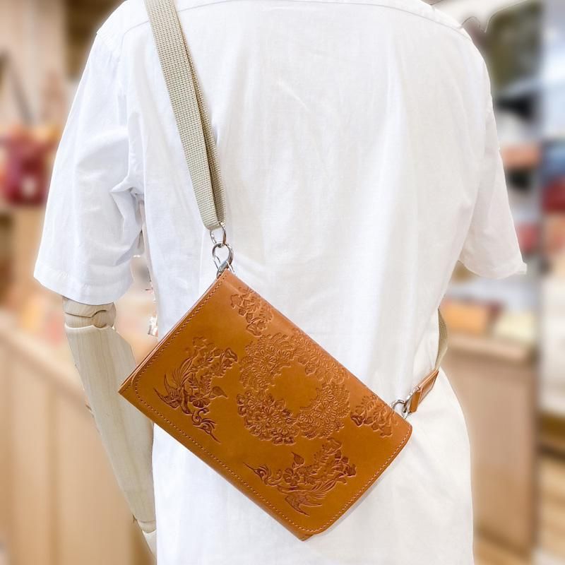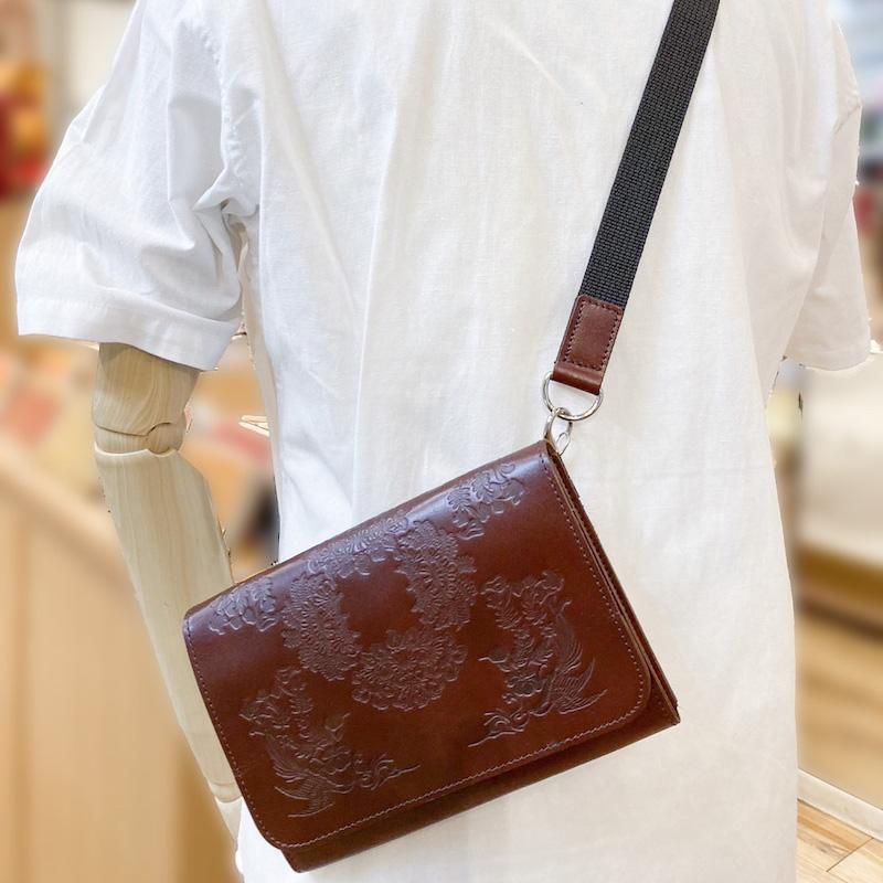 正倉院文様ヌメ革サコッシュ(全4色)